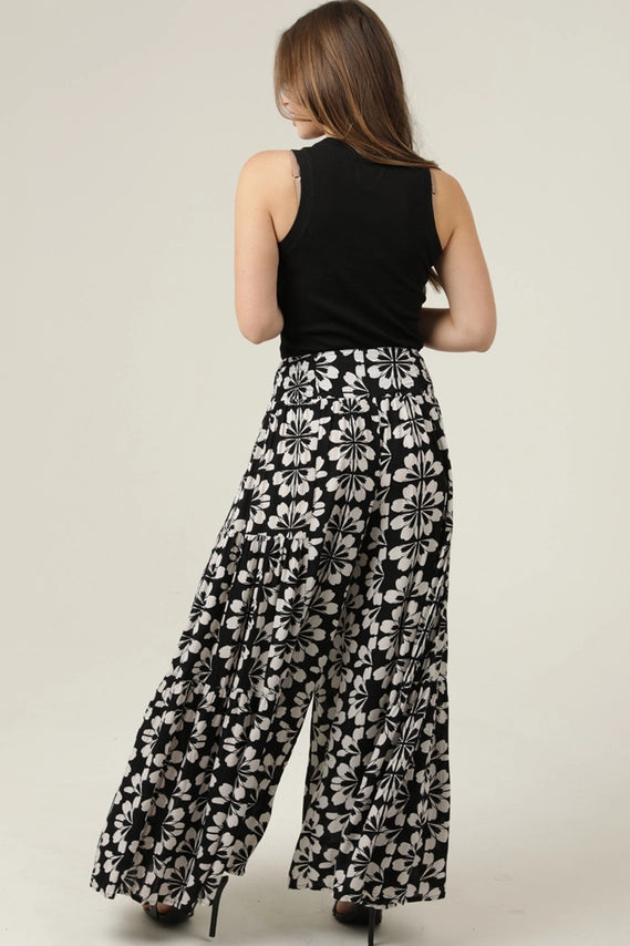 Effortless style meets comfort in these wide leg printed pants. The relaxed silhouette flatters all body types while the tie waist allows for a customized fit throughout the day. Perfect for casual outings or dressed up with your favorite top, these pants deliver versatile wear with eye-catching print details. A wardrobe essential that transitions seamlessly from day to night.
