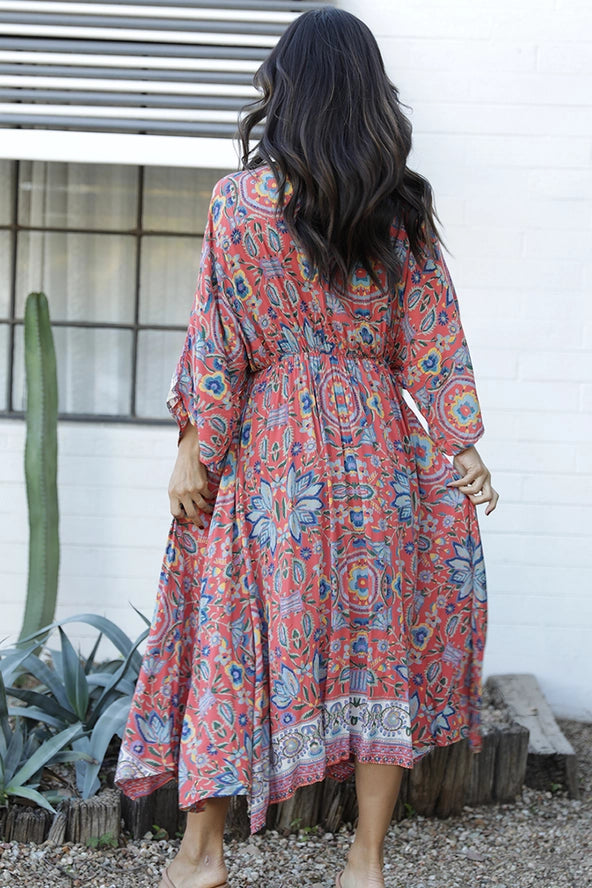 The Lola dress combines effortless elegance with flattering silhouette. This mid-sleeve v-neck maxi features a tie waist that cinches for a defined shape, creating movement and dimension. The flowing length and relaxed neckline make it perfect for both casual outings and dressed-up occasions. Versatile and comfortable, the Lola transitions seamlessly from day to evening.